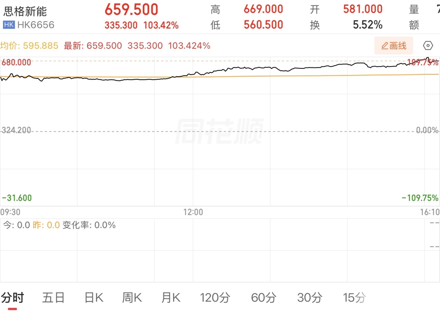 想格新动力首日收盘报659.5港元,来自同花顺。