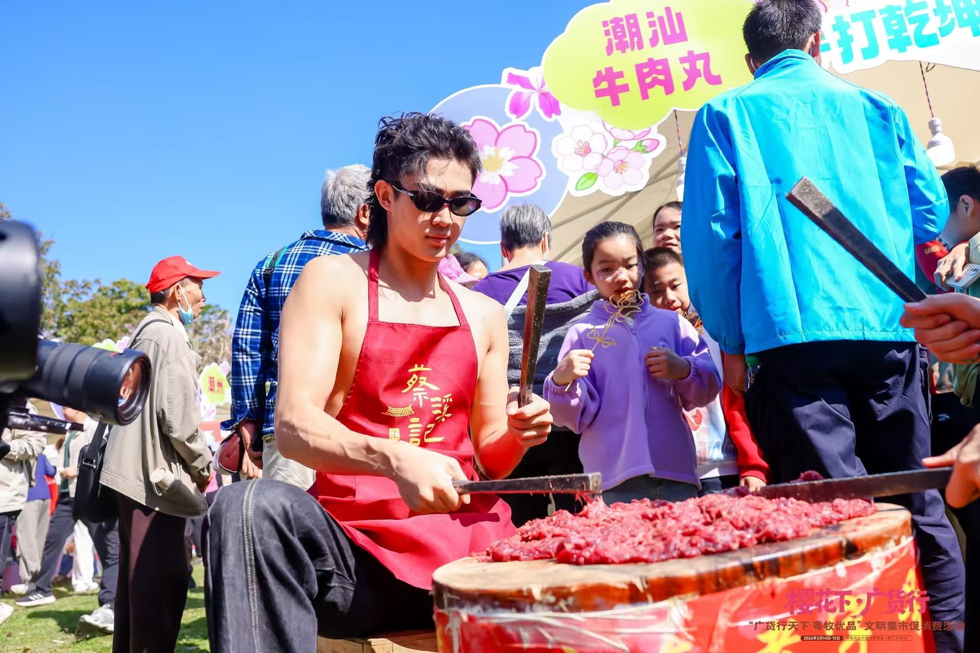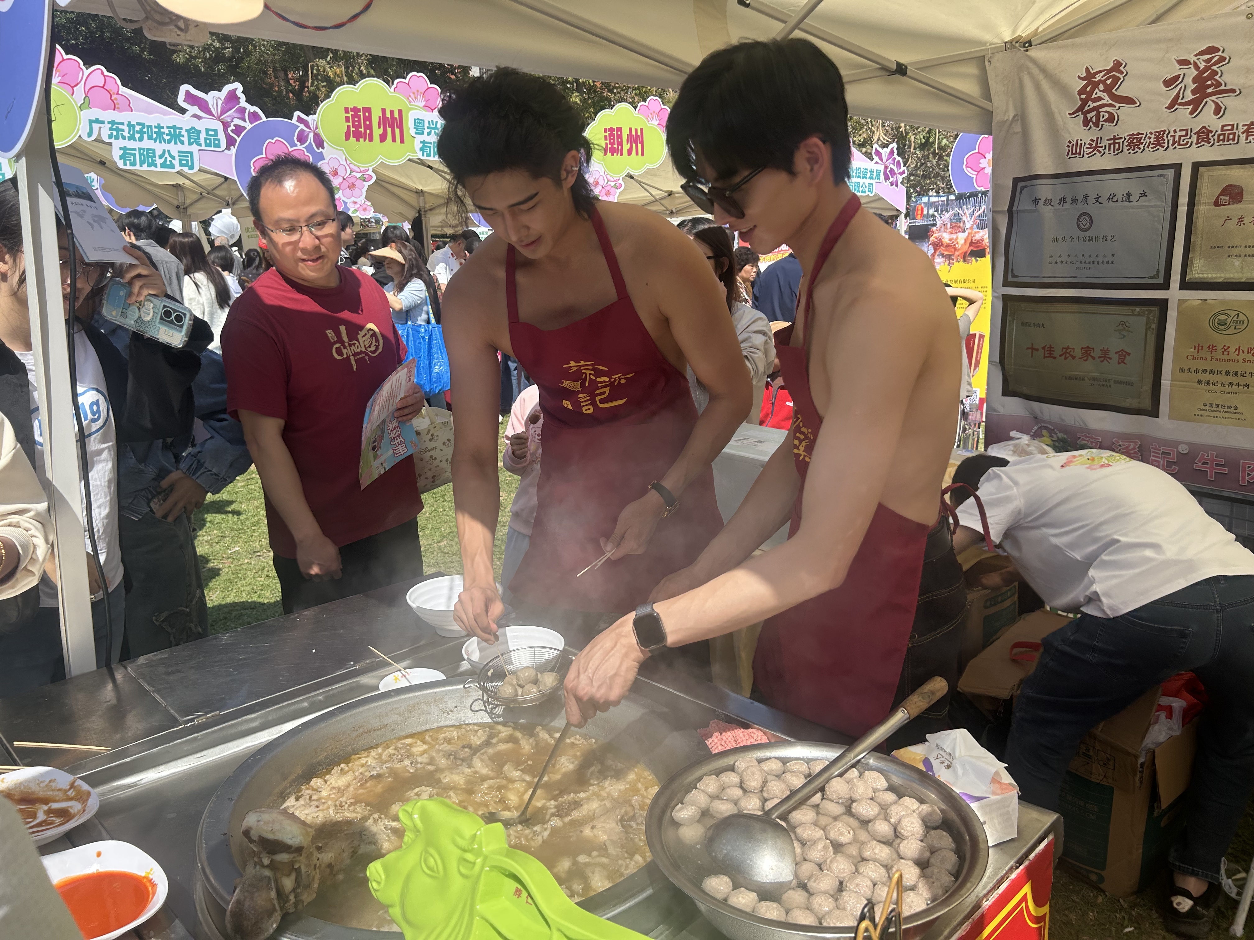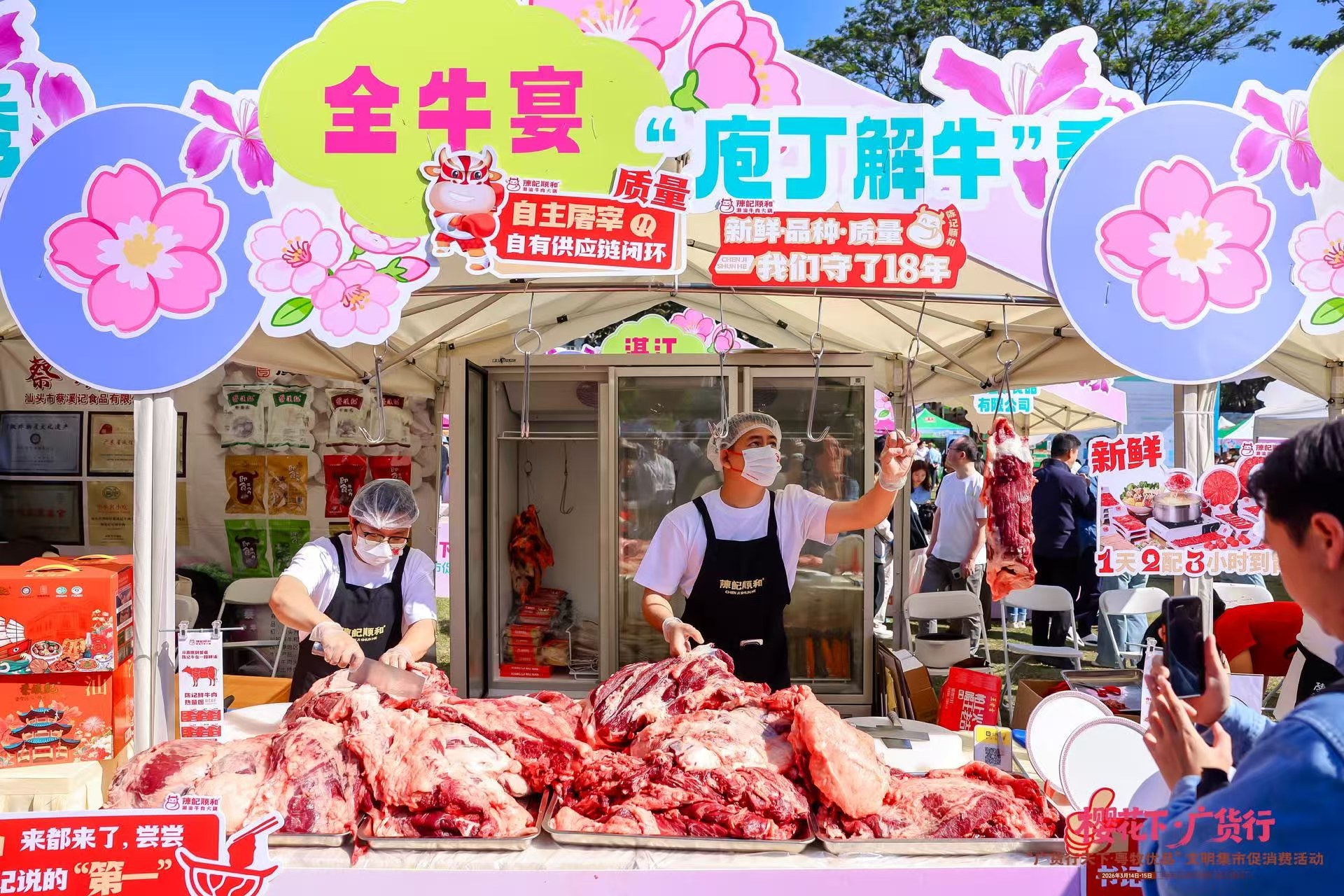 潮汕牛肉工艺展区东说念主头攒动。