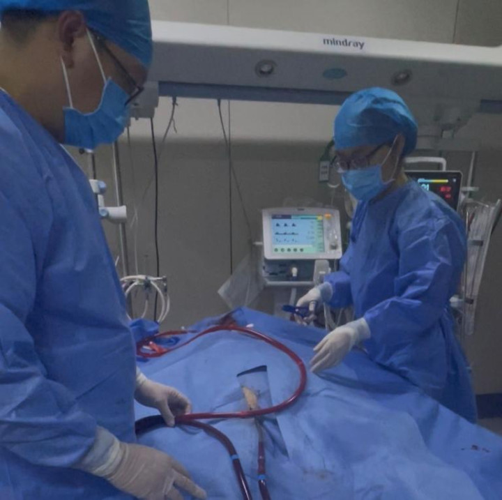 ECMO团队为刘先生老伴装配ECMO。骆雪萍摄