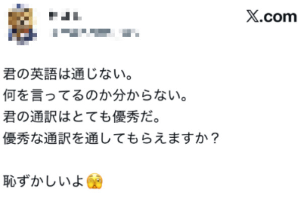 这一幕在日本相聚上激发讥讽,有日本网民说,“(特朗普的言下之意是)听不懂你的英语,不知说念你在说什么,你的翻译很优秀,是以能不行通过优秀的翻译同样?这太丢东说念主了。”