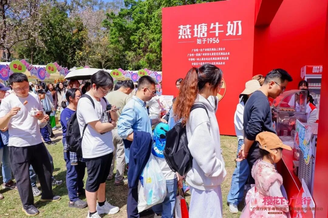 3月14日,“广货行寰宇·粤牧优品”文静集市促耗尽行动在华南农业大学宽广启幕,各类畜牧名优居品扎堆亮相,掀翻一波春日耗尽飞扬。看成华南乳业标杆品牌,燕塘乳业携旗下多款明星居品前来,展位前东谈主气爆棚、排起长龙,现场市民争相选购、试饮体验,吵杂氛围拉满。
